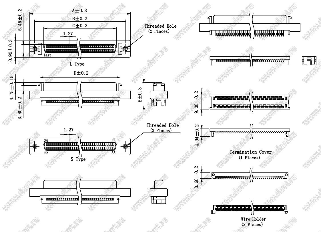 Каталог > Электронные компоненты, радиодетали > Разъёмы (соединители, переходники) > Разъемы SCSI > Розетки SCSI IDC на шлейф > B02-050218EC-6L