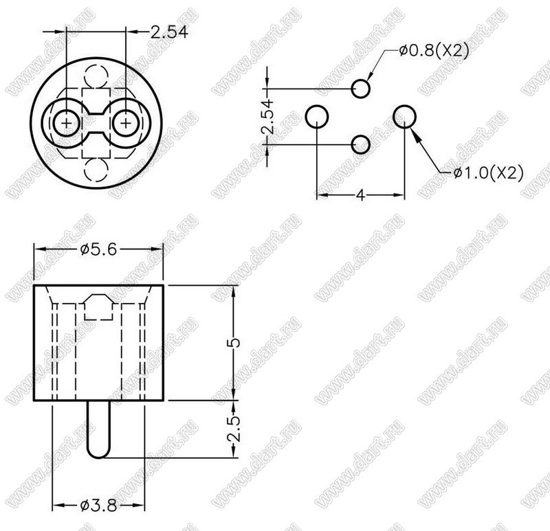 Каталог > Фурнитура для электронных устройств > Держатели и изоляторы компонентов > Держатели светодиодов > Держатели светодиодов прямые на плату (подставки для светодиодов) > LEDK серия > LEDK-5