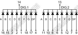 Каталог > Оптоэлектроника и индикация > Индикаторы светодиодные (сегментные дисплеи, матрицы, шкалы, светящиеся поля) > Цифровые и цифро-буквенные cветодиодные сегментные индикаторы (дисплеи) > 2-разрядные сегментные индикаторы > 2-разр. 0.52 дюйм. 7-сегм. 5221 серия > BJ5221AW