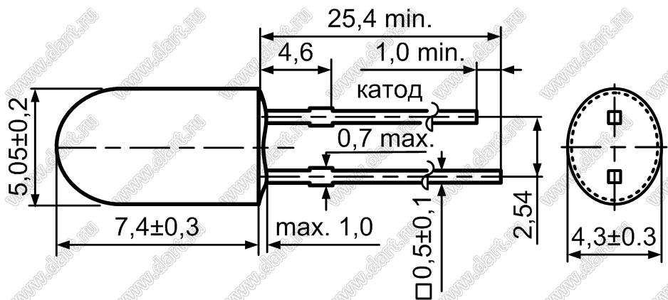 Каталог > Оптоэлектроника и индикация > Светодиоды и изделия на светодиодах > Светодиоды выводные > Светодиоды овальные 5,1х4,3 мм > 5203G6C-EHE-S
