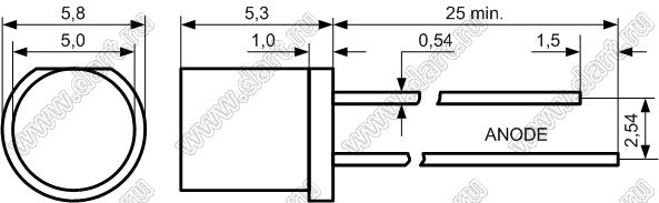Каталог > Оптоэлектроника и индикация > Светодиоды и изделия на светодиодах > Светодиоды выводные > Светодиоды цилиндрические 5,0x5,3 мм > 5634Y1C-KHB-A