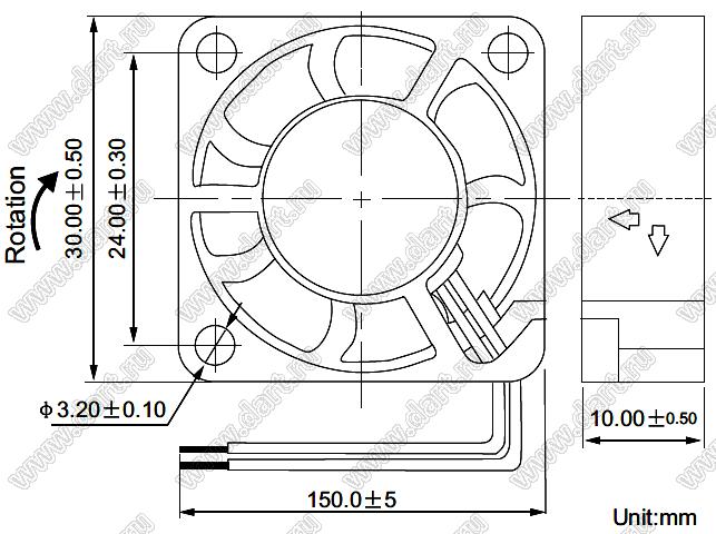 Каталог > Корпусные и установочные изделия > Устройства охлаждения > Вентиляторы > Вентиляторы осевые постоянного тока (DC) > DF31 серия (30x30x10мм) > DF31S12L