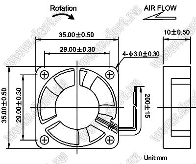 Каталог > Корпусные и установочные изделия > Устройства охлаждения > Вентиляторы > Вентиляторы осевые постоянного тока (DC) > DF35 серия (35x35x10мм) > DF35S12L
