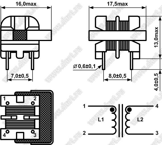 Каталог > Электронные компоненты, радиодетали > Комплектующие для моточных изделий > Фильтры подавления электромагнитных помех > CFU1001 серия > CFU1001H-04