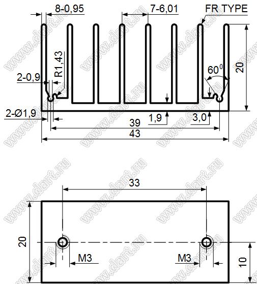 радиатор 43x20мм, H=20мм для корпуса TO-220 черненый