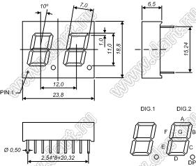 Индикатор светодиодный; 0.43"; 2-разр.; 7-сегм.; зеленый; общий катод