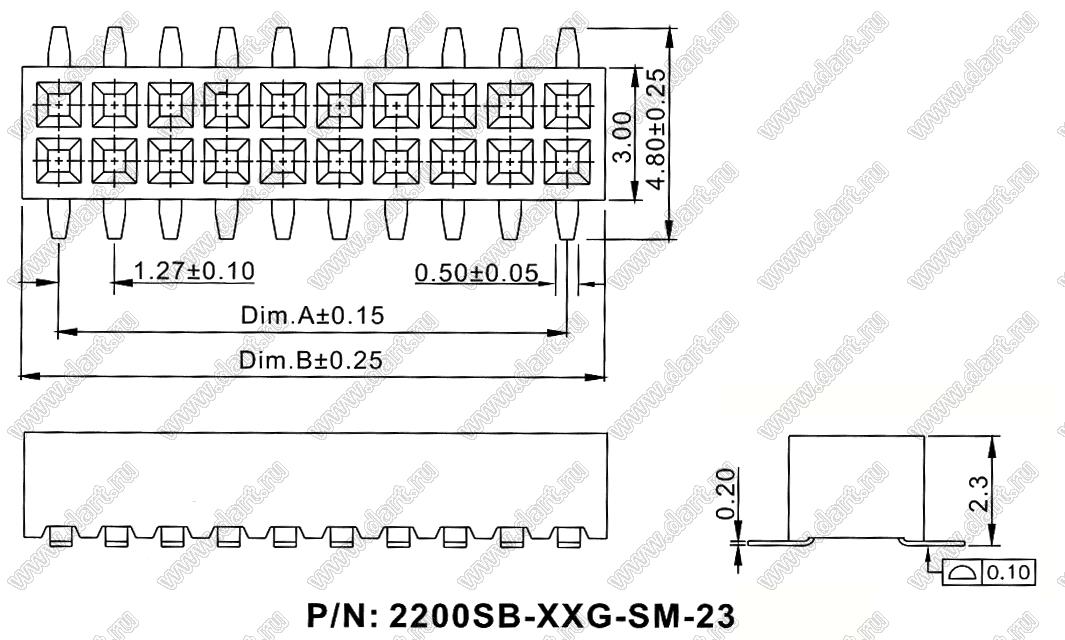 Каталог > Электронные компоненты, радиодетали > Разъёмы (соединители, переходники) > Разъемы плата-плата (межплатные) > шаг 1,27x1,27 мм (разъемы межплатные штыревые и гнезда для них) > двухрядные > 2200SB-XXXG-SM-23 серия > 2200SB-008G-SM-23