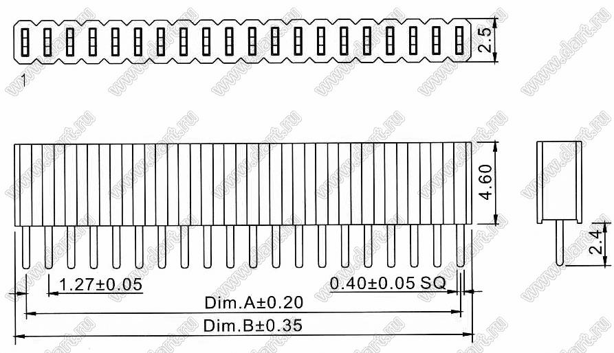Каталог > Электронные компоненты, радиодетали > Разъёмы (соединители, переходники) > Разъемы плата-плата (межплатные) > шаг 1,27x2,54 мм (разъемы межплатные штыревые и гнезда для них) > однорядные > 2206SA-XXG-46 (PBS1.27-XX) серия > 2206SA-07G-46 (PBS1.27-07, DS1065-01-1x07)