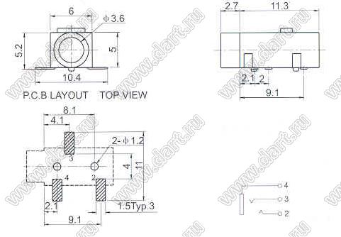 Каталог > Электронные компоненты, радиодетали > Разъёмы (соединители, переходники) > Разъемы аудио-видео > Аудио разъемы 3,5 мм > PJ-320B