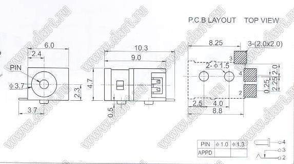 Каталог > Электронные компоненты, радиодетали > Разъёмы (соединители, переходники) > Разъемы вторичного (низковольтного) DC питания > DC гнезда (вторичного низковольтного питания) > DC-045-1.3