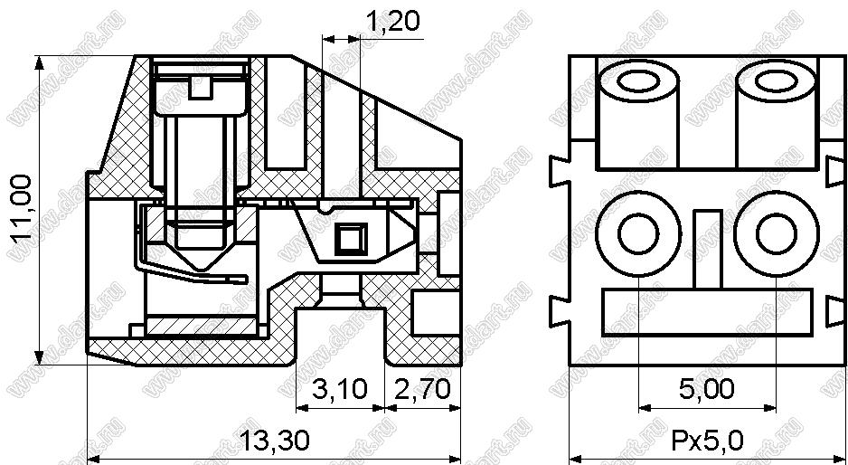 Каталог > Электронные компоненты, радиодетали > Клеммники (колодки клеммные) > Клеммники винтовые для монтажа в отверстия печатных плат > Винтовые клеммники (шаг 5,0 мм) > KF332K-5.0 (DG332K-5.0) серия > KF332K-5.0-03P-12 (DG332K-5.0-03P-12, 320-031-12)