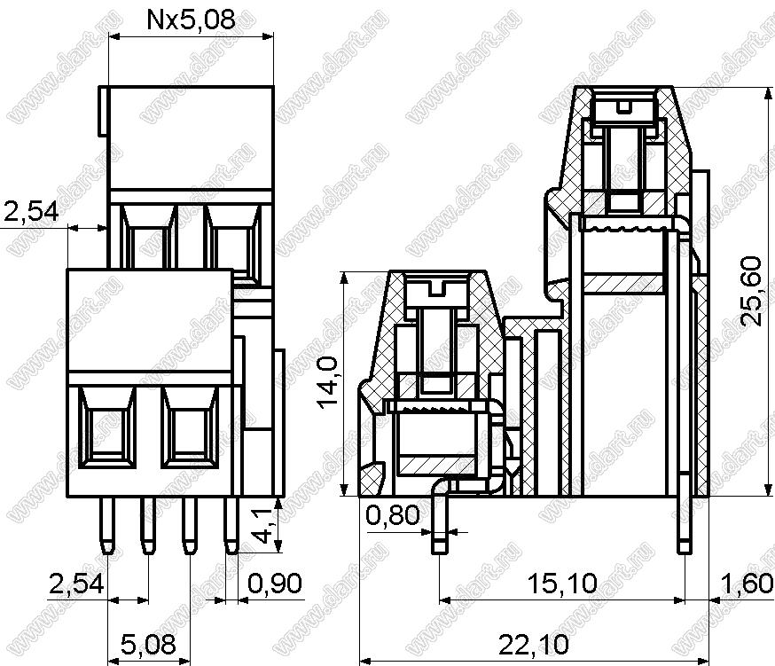 Каталог > Электронные компоненты, радиодетали > Клеммники (колодки клеммные) > Клеммники винтовые для монтажа в отверстия печатных плат > Винтовые клеммники (шаг 5,08 мм) > KF128B-5.08 серия > KF128B-5.08-03P-14