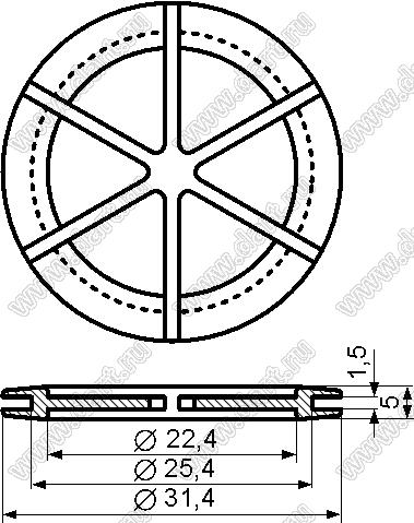 Заглушка отверстия с вырезом для провода; черная; Dотв.=25,4мм