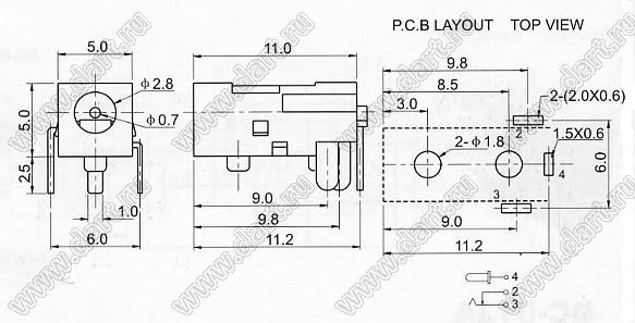 Каталог > Электронные компоненты, радиодетали > Разъёмы (соединители, переходники) > Разъемы вторичного (низковольтного) DC питания > DC гнезда (вторичного низковольтного питания) > DC-011(B)