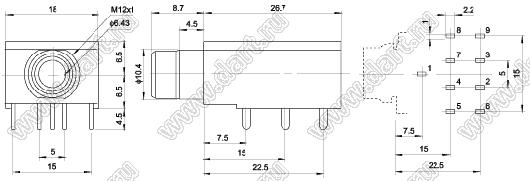 Каталог > Электронные компоненты, радиодетали > Разъёмы (соединители, переходники) > Разъемы аудио-видео > Аудио разъемы 6,35 мм наушников (головных телефонов) > Прочее > PJ-605A (CK3-6.35-6A)