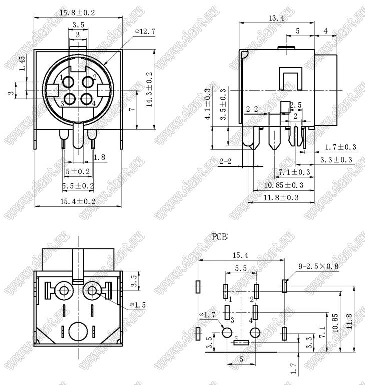 Каталог > Электронные компоненты, радиодетали > Разъёмы (соединители, переходники) > Разъемы DIN (мини) > Силовые мини-DIN > MPC-4-02-C