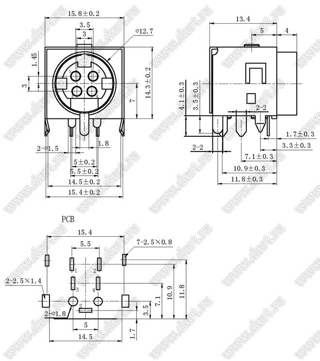 Каталог > Электронные компоненты, радиодетали > Разъёмы (соединители, переходники) > Разъемы DIN (мини) > Силовые мини-DIN > MPC-4-03-C