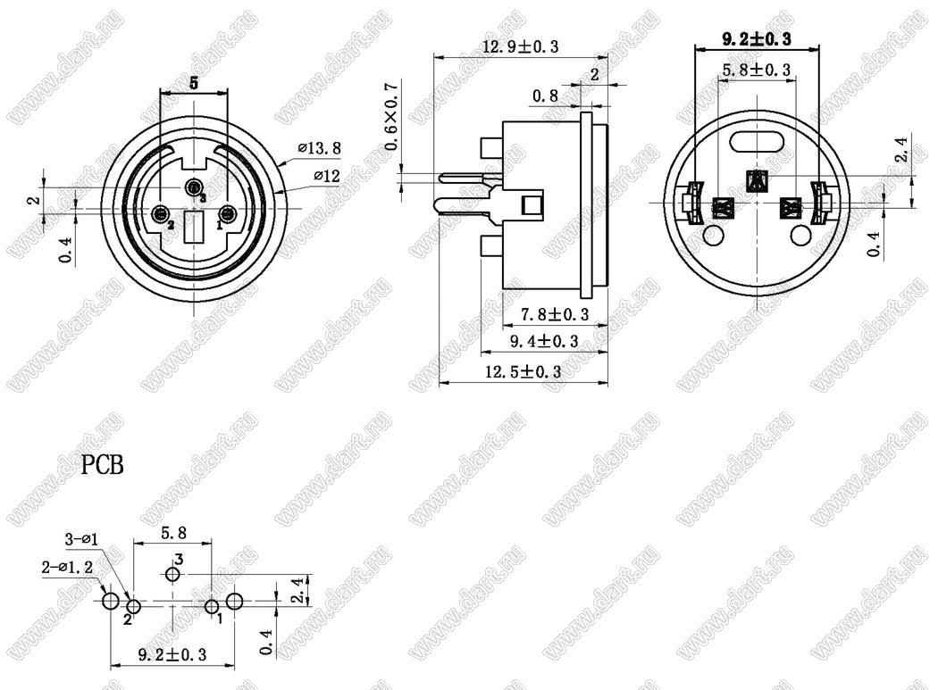 Каталог > Электронные компоненты, радиодетали > Разъёмы (соединители, переходники) > Разъемы DIN (мини) > Розетки мини-DIN на плату > MDC-3-04