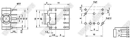 Каталог > Электронные компоненты, радиодетали > Разъёмы (соединители, переходники) > Разъемы аудио-видео > Аудио разъемы 3,5 мм > PJ-307GB (CKX-3.5-23)