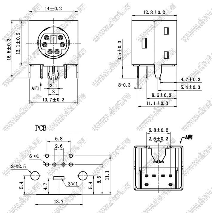 Каталог > Электронные компоненты, радиодетали > Разъёмы (соединители, переходники) > Разъемы DIN (мини) > Розетки мини-DIN на плату > MDC-6-19B