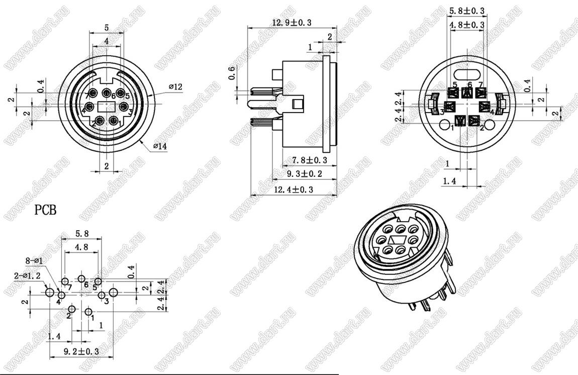 Каталог > Электронные компоненты, радиодетали > Разъёмы (соединители, переходники) > Разъемы DIN (мини) > Розетки мини-DIN на плату > MDC-7-04
