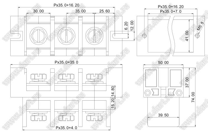 Каталог > Электронные компоненты, радиодетали > Клеммники (колодки клеммные) > Клеммники барьерные > Барьерные клеммники (шаг 35,0 мм) > KF77-35.0 серия > KF77-35.0-10P-13