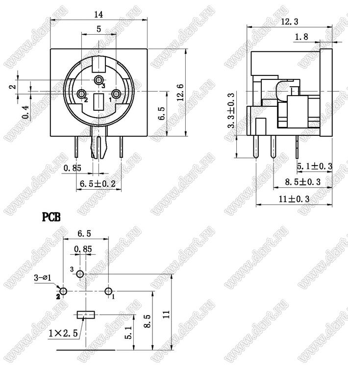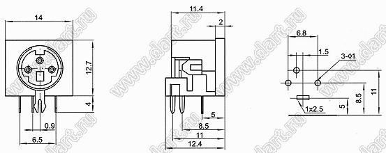 Каталог > Электронные компоненты, радиодетали > Разъёмы (соединители, переходники) > Разъемы DIN (мини) > Розетки мини-DIN на плату > MDC-3-01