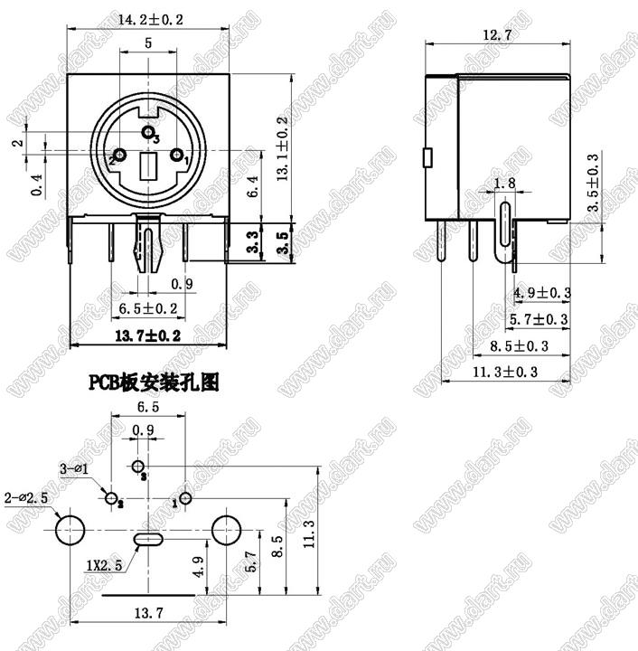 Каталог > Электронные компоненты, радиодетали > Разъёмы (соединители, переходники) > Разъемы DIN (мини) > Розетки мини-DIN на плату > MDC-3-03