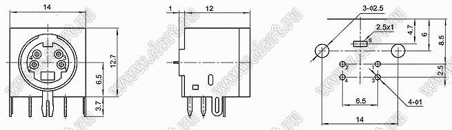 Каталог > Электронные компоненты, радиодетали > Разъёмы (соединители, переходники) > Разъемы DIN (мини) > Розетки мини-DIN на плату > MDC-4-02