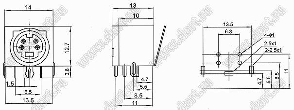 Каталог > Электронные компоненты, радиодетали > Разъёмы (соединители, переходники) > Разъемы DIN (мини) > Розетки мини-DIN на плату > MDC-4-03A