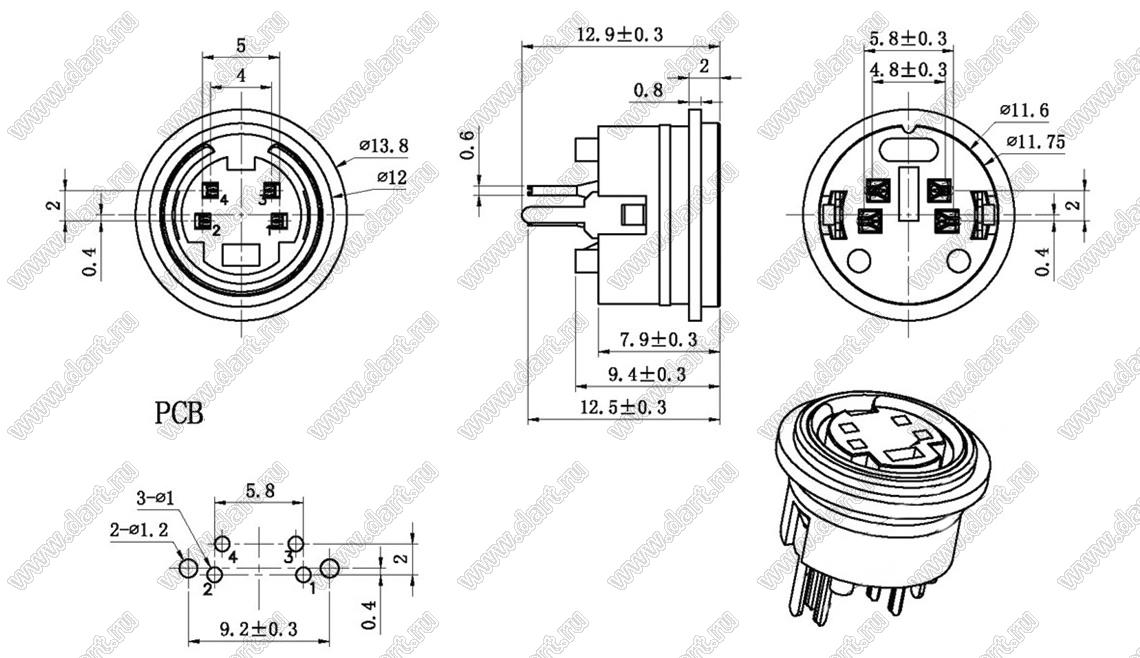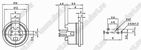 Каталог > Электронные компоненты, радиодетали > Разъёмы (соединители, переходники) > Разъемы DIN (мини) > Розетки мини-DIN на плату > MDC-4-04