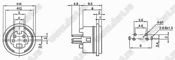 Каталог > Электронные компоненты, радиодетали > Разъёмы (соединители, переходники) > Разъемы DIN (мини) > Розетки мини-DIN на плату > MDC-4-04K