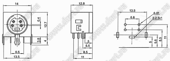 Каталог > Электронные компоненты, радиодетали > Разъёмы (соединители, переходники) > Разъемы DIN (мини) > Розетки мини-DIN на плату > MDC-4-05