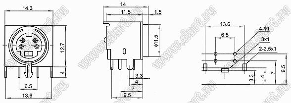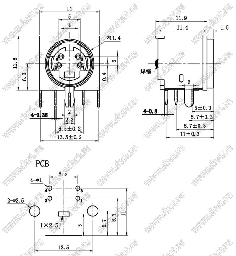 Каталог > Электронные компоненты, радиодетали > Разъёмы (соединители, переходники) > Разъемы DIN (мини) > Розетки мини-DIN на плату > MDC-4-06