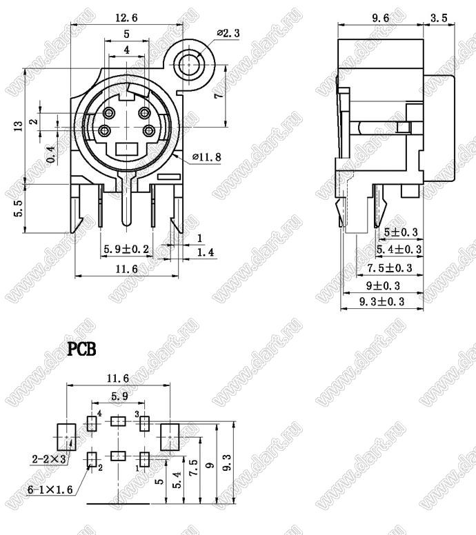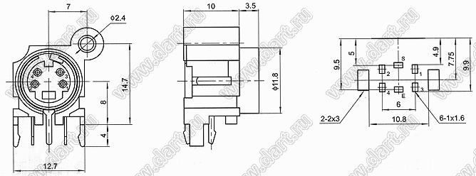 Каталог > Электронные компоненты, радиодетали > Разъёмы (соединители, переходники) > Разъемы DIN (мини) > Розетки мини-DIN на плату > MDC-4-11