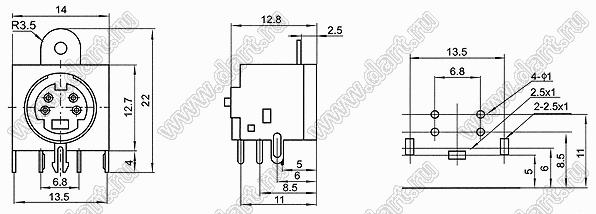 Каталог > Электронные компоненты, радиодетали > Разъёмы (соединители, переходники) > Разъемы DIN (мини) > Розетки мини-DIN на плату > MDC-4-17