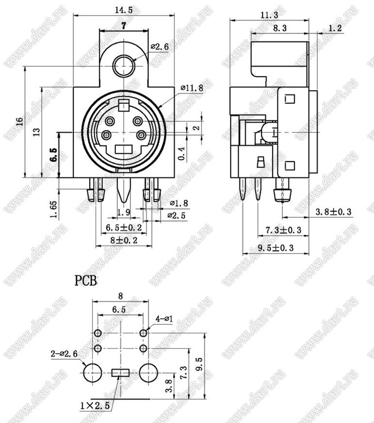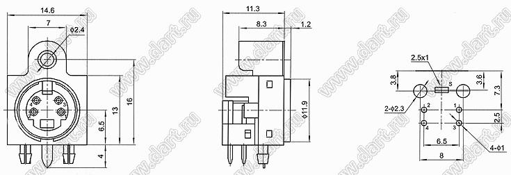 Каталог > Электронные компоненты, радиодетали > Разъёмы (соединители, переходники) > Разъемы DIN (мини) > Розетки мини-DIN на плату > MDC-4-33D