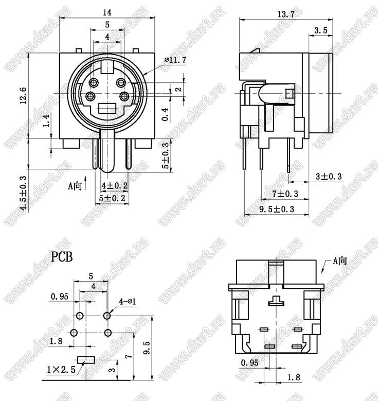 Каталог > Электронные компоненты, радиодетали > Разъёмы (соединители, переходники) > Разъемы DIN (мини) > Розетки мини-DIN на плату > MDC-4-36