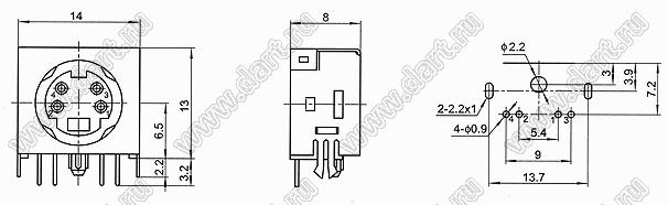 Каталог > Электронные компоненты, радиодетали > Разъёмы (соединители, переходники) > Разъемы DIN (мини) > Розетки мини-DIN на плату > MDC-4-44