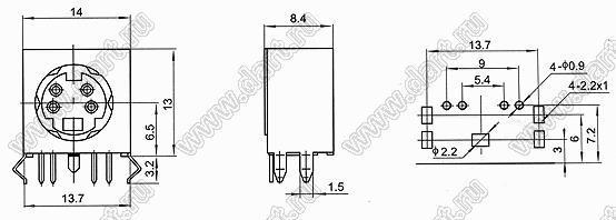 Каталог > Электронные компоненты, радиодетали > Разъёмы (соединители, переходники) > Разъемы DIN (мини) > Розетки мини-DIN на плату > MDC-4-48