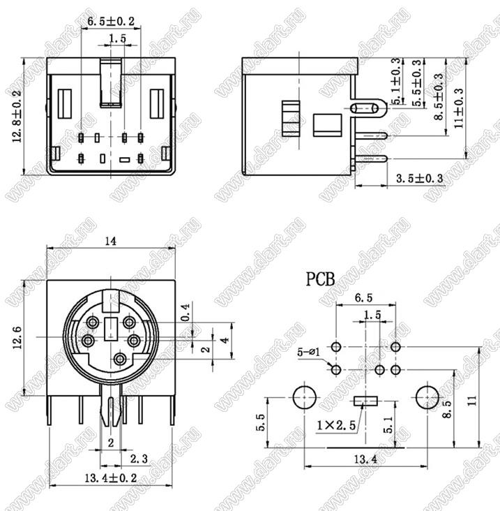 Каталог > Электронные компоненты, радиодетали > Разъёмы (соединители, переходники) > Разъемы DIN (мини) > Розетки мини-DIN на плату > MDC-5-05