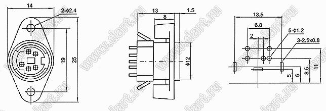 Каталог > Электронные компоненты, радиодетали > Разъёмы (соединители, переходники) > Разъемы DIN (мини) > Розетки мини-DIN на корпус > MDC-5-09