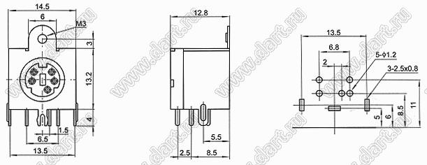 Каталог > Электронные компоненты, радиодетали > Разъёмы (соединители, переходники) > Разъемы DIN (мини) > Розетки мини-DIN на плату > MDC-5-18