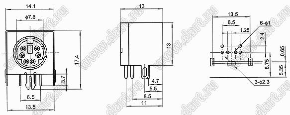 Каталог > Электронные компоненты, радиодетали > Разъёмы (соединители, переходники) > Разъемы DIN (мини) > Розетки мини-DIN на плату > MDC-6-03