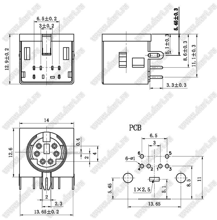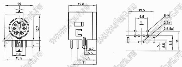 Каталог > Электронные компоненты, радиодетали > Разъёмы (соединители, переходники) > Разъемы DIN (мини) > Розетки мини-DIN на плату > MDC-6-05