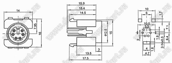 Каталог > Электронные компоненты, радиодетали > Разъёмы (соединители, переходники) > Разъемы DIN (мини) > Розетки мини-DIN на плату > MDC-6-10
