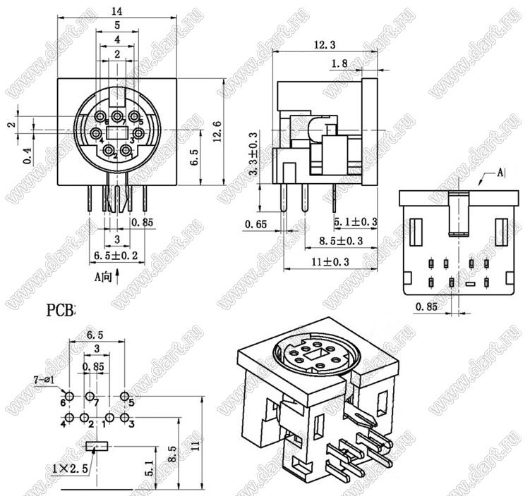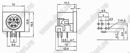 Каталог > Электронные компоненты, радиодетали > Разъёмы (соединители, переходники) > Разъемы DIN (мини) > Розетки мини-DIN на плату > MDC-7-01