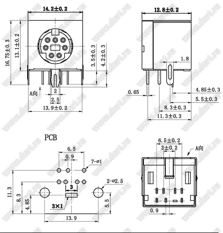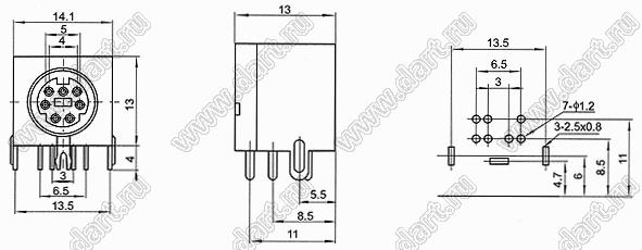 Каталог > Электронные компоненты, радиодетали > Разъёмы (соединители, переходники) > Разъемы DIN (мини) > Розетки мини-DIN на плату > MDC-7-03