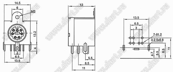 Каталог > Электронные компоненты, радиодетали > Разъёмы (соединители, переходники) > Разъемы DIN (мини) > Розетки мини-DIN на плату > MDC-7-18