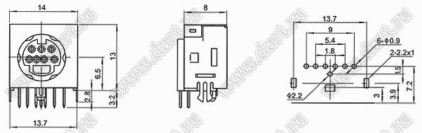 Каталог > Электронные компоненты, радиодетали > Разъёмы (соединители, переходники) > Разъемы DIN (мини) > Розетки мини-DIN на плату > MDC-7-43